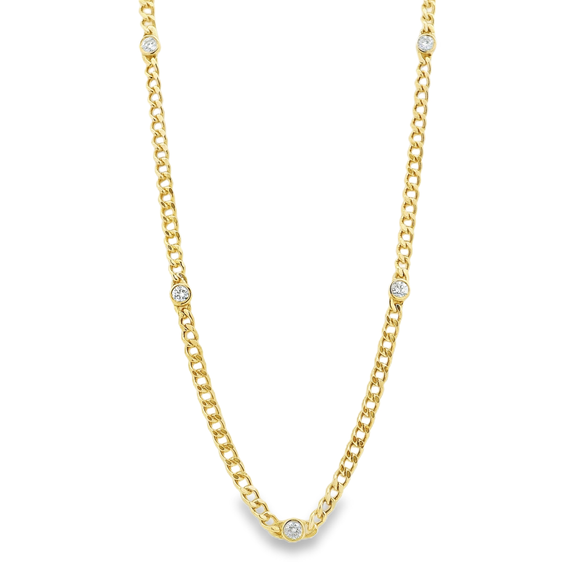5 Diamond Bezel Cuban Chain Necklace