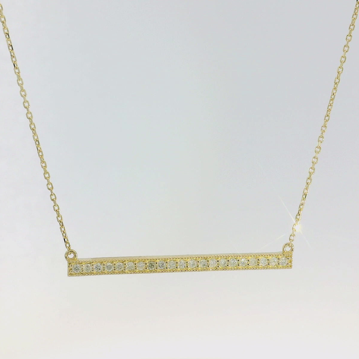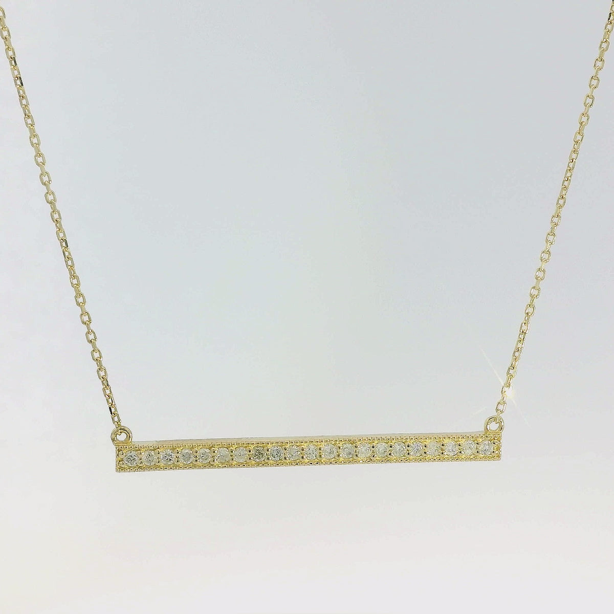 Elevate your look with our Diamond Bar Necklace. Featuring a stunning diamond bar on a delicate chain, this accessory is the perfect addition to any outfit. Add a touch of sophistication and simplicity to your jewelry collection with this timeless piece.