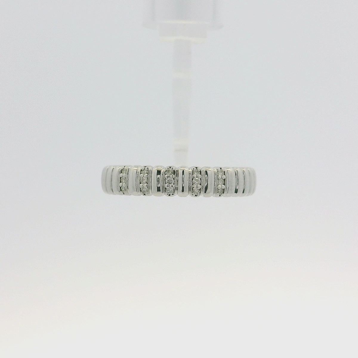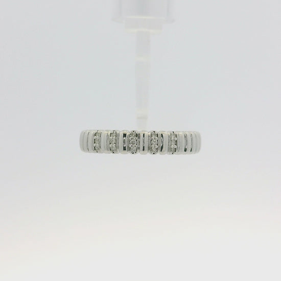 This diamond studded fluted ring features a unique design that is both elegant and modern. With its stunning diamonds, this ring is sure to catch the eye and make a statement. Perfect for special occasions or everyday wear, this ring is a timeless addition to any jewelry collection.