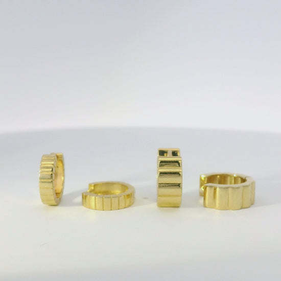 Crafted from 14k gold, our Fluted Thin Huggie earrings flawlessly combine elegance and simplicity. The delicate, yet sturdy design hugs your earlobes comfortably, making them perfect for everyday wear. Elevate your style with these timeless beauties.