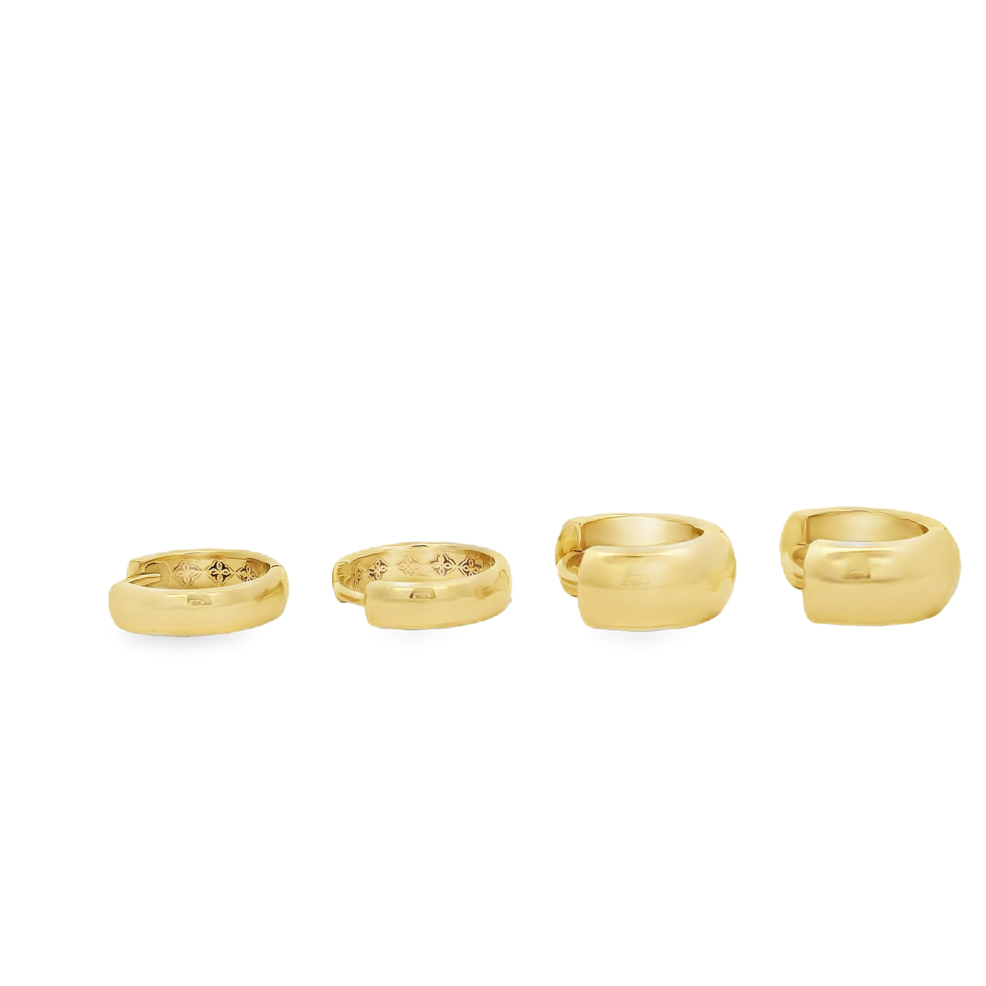 These stunning gold hoop earrings are perfect in their simplicity. Their sleek design and polished finish make them a great choice for stacking and a must-have in your jewelry collection.
